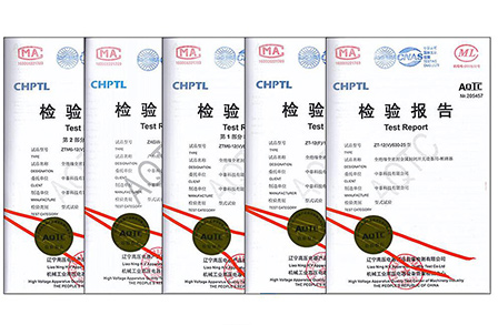 2020年05月24日,我司先后經(jīng)過**電器產(chǎn)品質(zhì)量監(jiān)督檢驗(yàn)中心、遼寧高壓電器產(chǎn)品質(zhì)量檢測(cè)有限公司等機(jī)構(gòu)的檢驗(yàn),我司產(chǎn)品符合質(zhì)量要求,順利取得高壓產(chǎn)品檢驗(yàn)報(bào)告